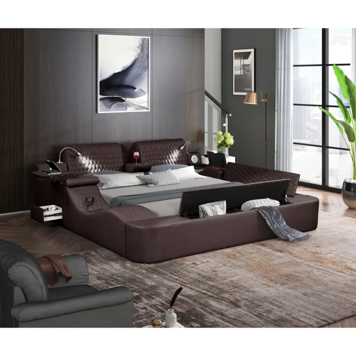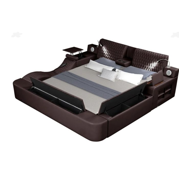 Experience the future of bedroom comfort with our Smart Multifunctional Bed. Crafted with high-quality wood, this bed isn’t just a place to sleep; it’s a complete relaxation and entertainment hub designed to enhance your lifestyle. Enjoy integrated massage, Bluetooth speakers, ample storage, and a stylish design that elevates any bedroom décor.