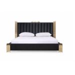 Introducing the Black Velour Upholstered Platform Bed, a statement piece that blends contemporary design with unparalleled comfort. This bed features a plush black velour upholstery, a generously padded headboard, and striking champagne gold stainless steel legs. Transform your bedroom into a sanctuary of relaxation and sophistication.